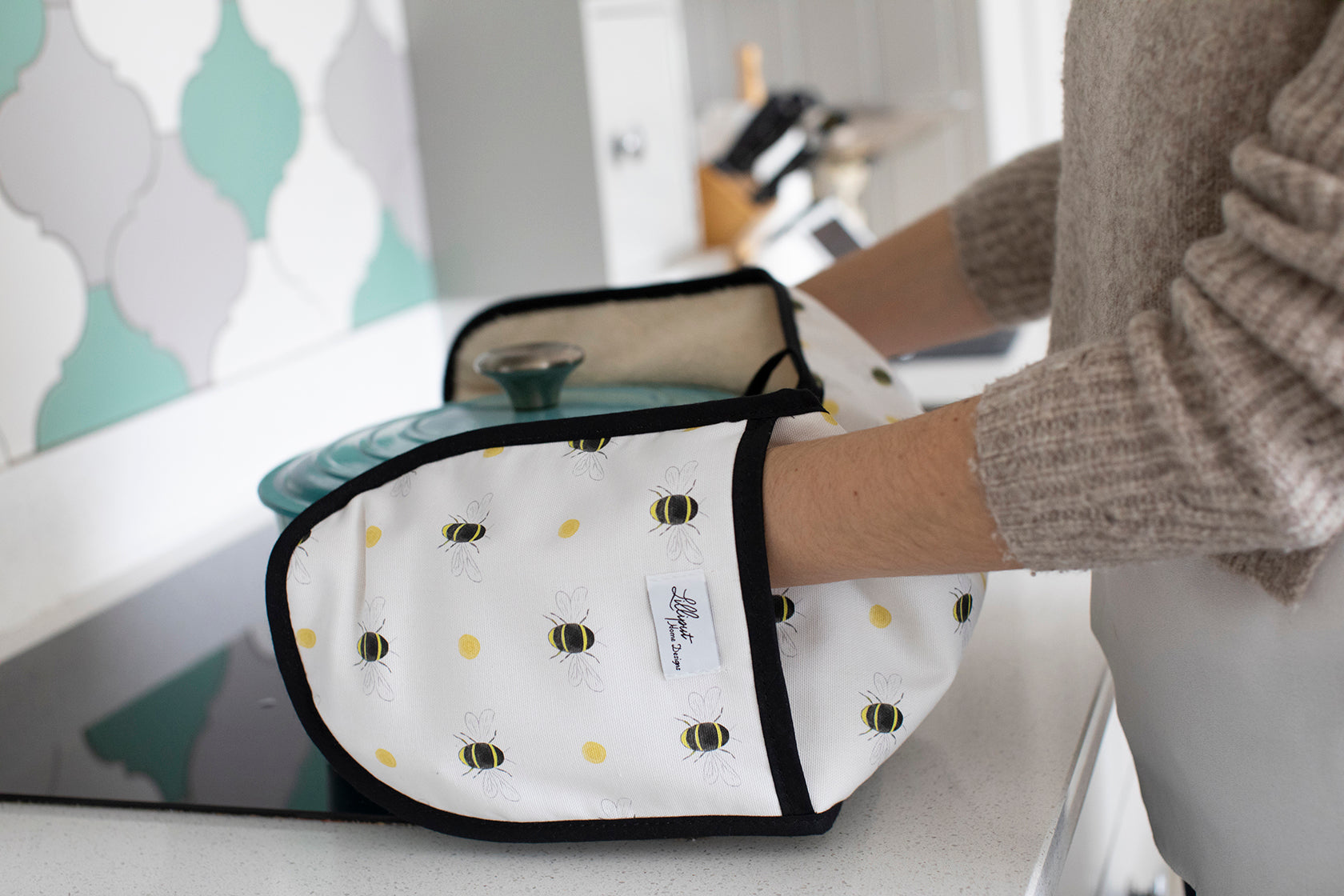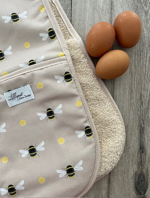 Bumble Bee Oven Gloves - Taupe Background