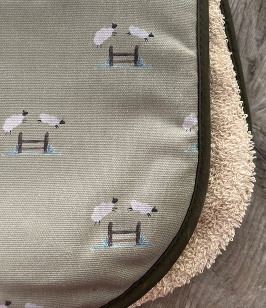 Jumping Sheep Oven Glove - Sage Background