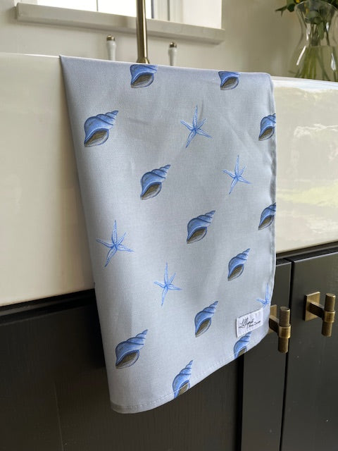 BLUE SHELL AND STARFISH TEA TOWEL