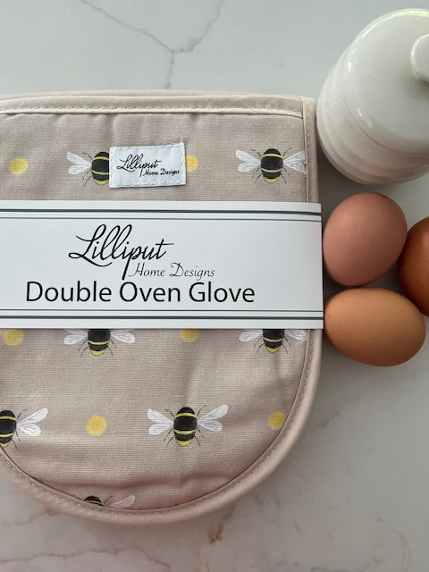 Bumble Bee Oven Gloves - Taupe Background
